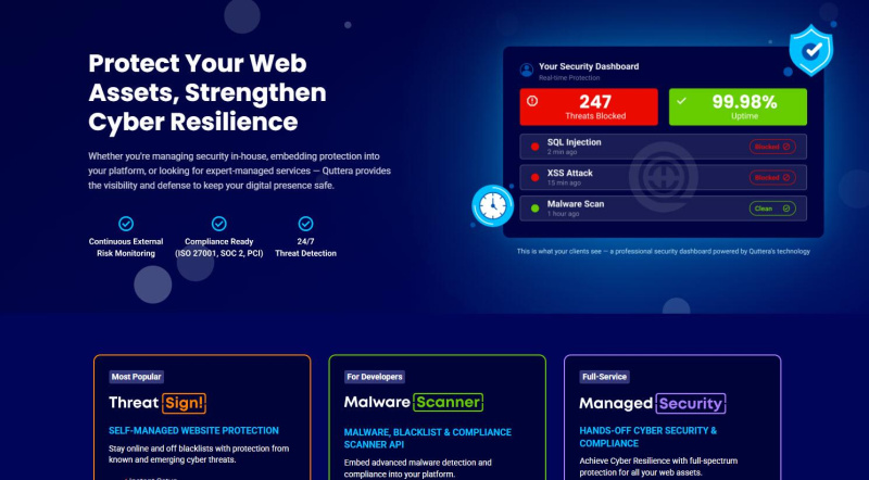Quttera provides automated website security and malware detection solutions, delivering compliance-ready evidence for organizations across financial services, healthcare, e-commerce, and technology sectors. Its comprehensive suite includes advanced heuristic scanning, blacklist monitoring, and remediation services, helping businesses worldwide protect their digital assets and reputation.